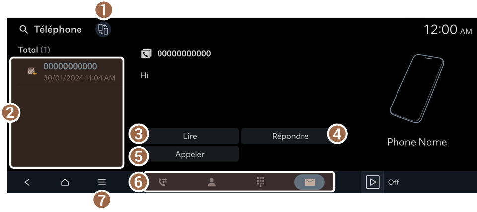 dans l'onglet inférieur de l'écran du téléphone. - Sélectionnez un message dans la liste.