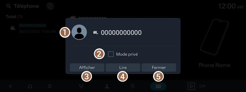 - Si les informations de l'émetteur ne sont pas enregistrées, seul le numéro de téléphone s'affiche.