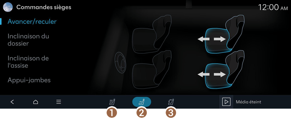 Réglez les paramètres de ventilation, de chauffage et/ou de positionnement pour les sièges.