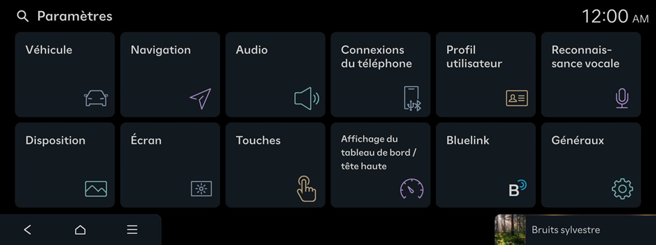 dans l'écran ou sur le bouton [SEARCH] du panneau de commande, saisissez un terme de recherche, puis sélectionnez l'élément à exécuter. - La disponibilité des paramètres dépend du modèle et des spécifications du véhicule.