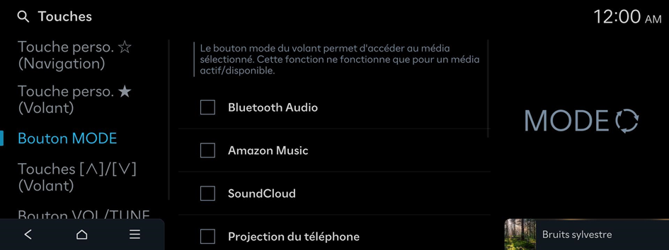 Le bouton mode du volant permet d'accéder au média sélectionné. Cette fonction ne fonctionne que pour un média actif/disponible.