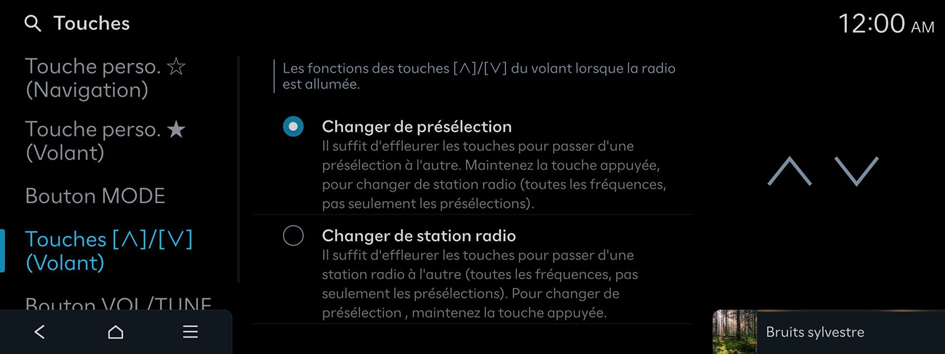 Les fonctions des touches [∧]/[∨] du volant lorsque la radio est allumée.