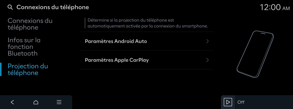 Détermine si la projection du téléphone est automatiquement activée par la connexion du smartphone.