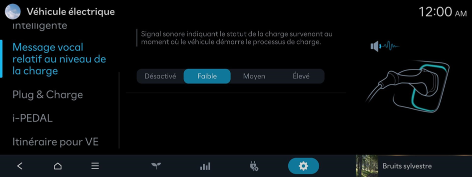 Signal sonore indiquant le statut de la charge survenant au moment où le véhicule démarre le processus de charge.