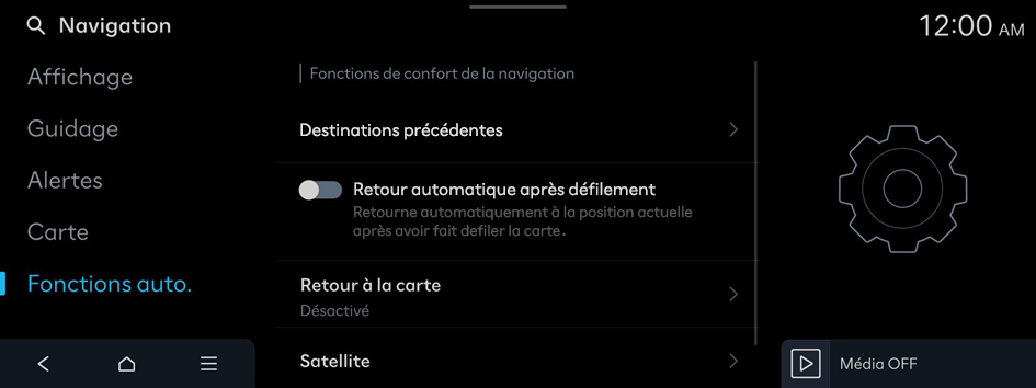 Vous pouvez configurer les opérations de navigation, l'affichage de l'écran, le guidage vocal et d'autres paramètres.