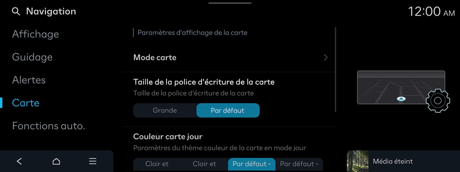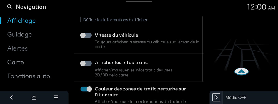- Dans l'écran d'accueil, appuyez sur Paramètres ▶ Navigation.