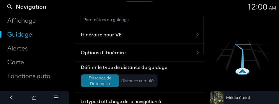 Définissez les paramètres pour afficher la distance jusqu'à la destination pendant le guidage d'itinéraire.