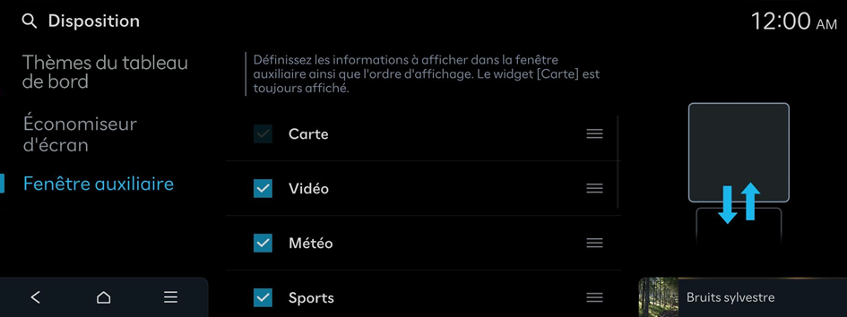 La fenêtre des paramètres d'organisation de l'écran s'affiche.