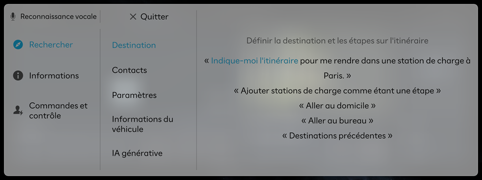 Lorsqu'un guidage vocal est lancé, la reconnaissance vocale commence.