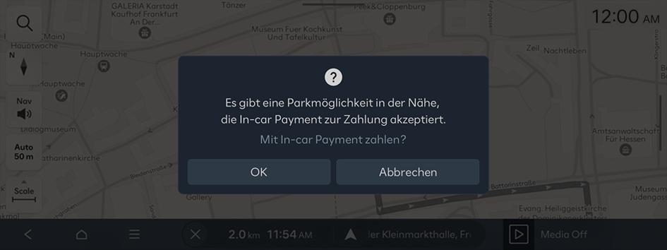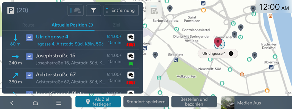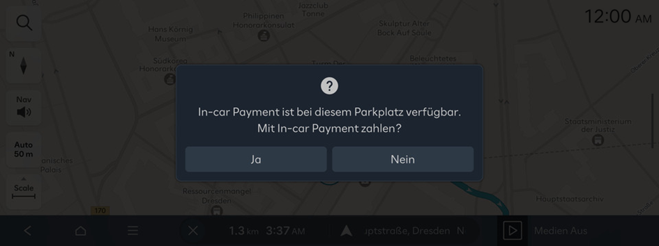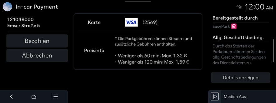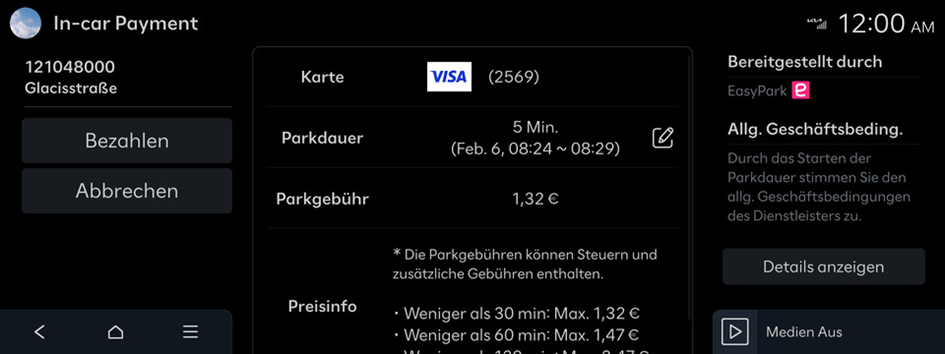 - In-car Payment kann nur bei zugehörigen Parkplätzen verwendet werden.