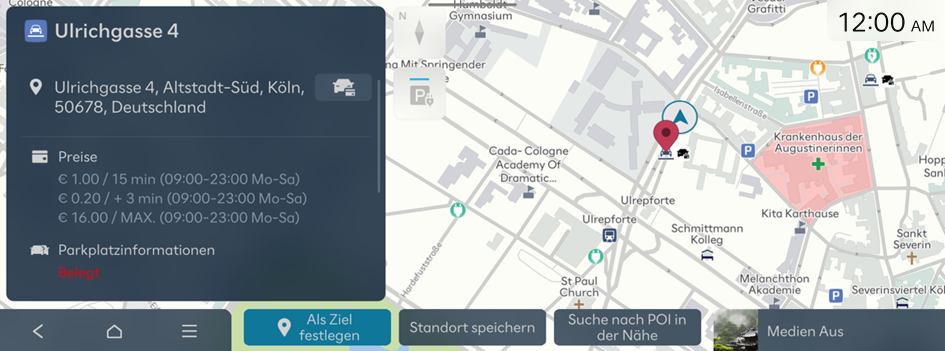 - Die auf dem Kartenbildschirm angezeigten Details zu Parkplätzen stimmen eventuell nicht mit den tatsächlichen Informationen überein.