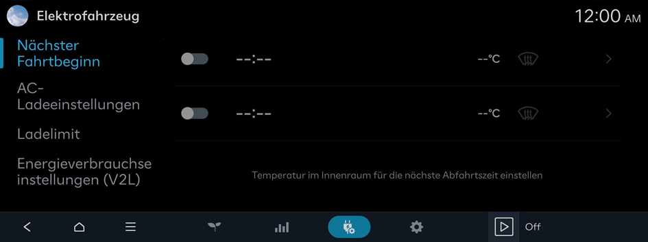 Sie können verschiedene Funktionen wie die automatische Batterieladung oder die Klimatisierung entsprechend der angegebenen Abfahrtszeit konfigurieren.