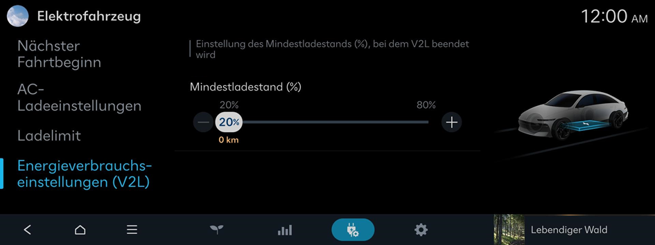 Einstellung des Mindestladestands (%), bei dem V2L beendet wird.