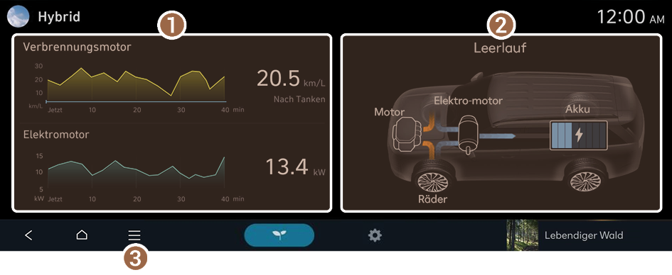 Sie können den Kraftstoffverbrauch und die Energieflüsse des Fahrzeugs anzeigen.
