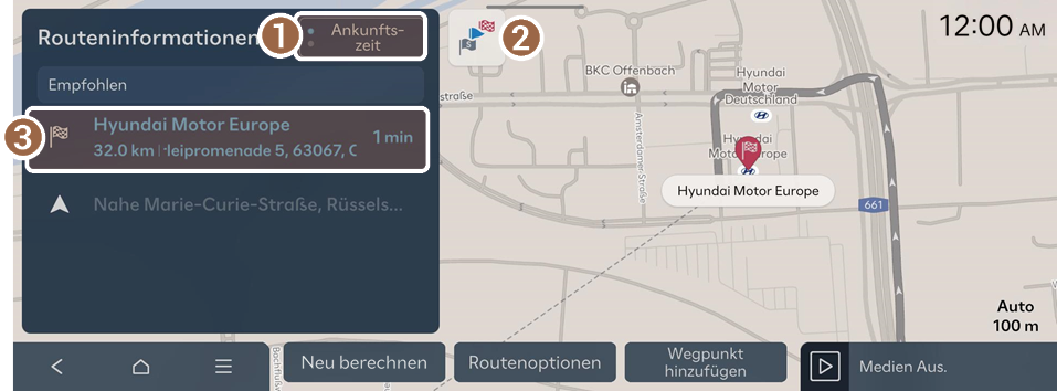 - Die Routenführung ist möglicherweise nicht korrekt, wenn das Fahrzeug von der Route abweicht.