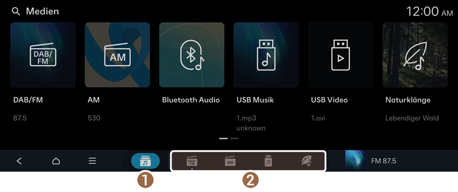 Geben Sie Musik oder Videos über verschiedene Medien wie z. B. das Radio wieder.