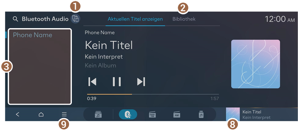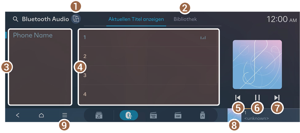 - Zeigt den Bildschirm „Bluetooth Audio Player“ an.