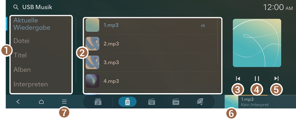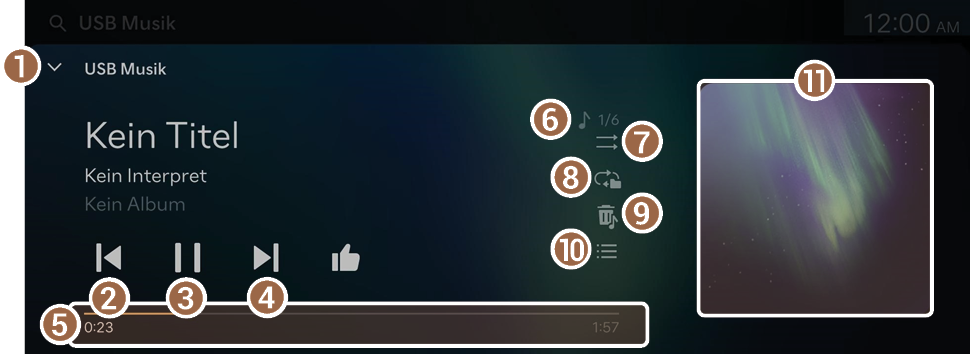 - Zeigt den Bildschirm „USB Musik-Player“ an.