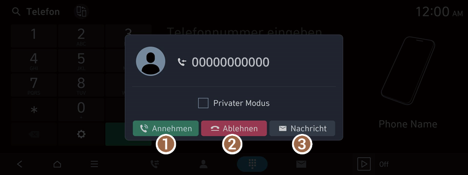 - Um den Anruf entgegenzunehmen, tippen Sie auf dem Bildschirm auf Annehmen oder drücken Sie die Anruftaste am Lenkrad.