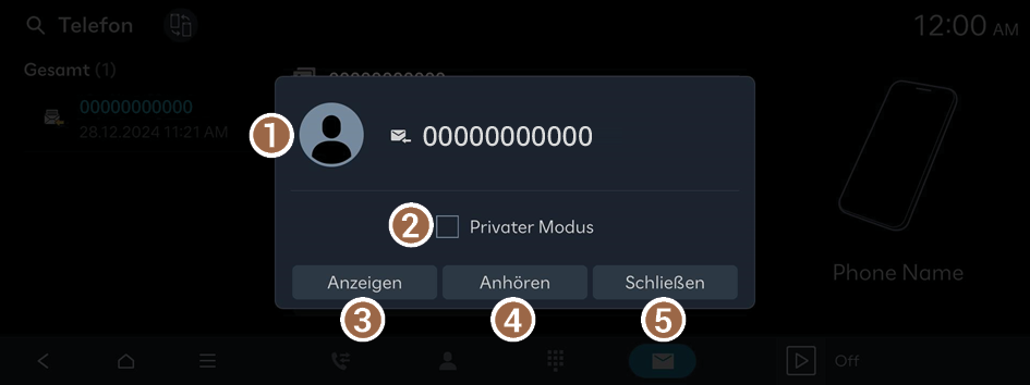 - Wenn die Anruferinformationen nicht gespeichert sind, wird nur die Rufnummer angezeigt.