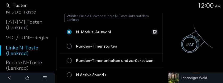 Wählen Sie die Funktion für die N-Taste links auf dem Lenkrad