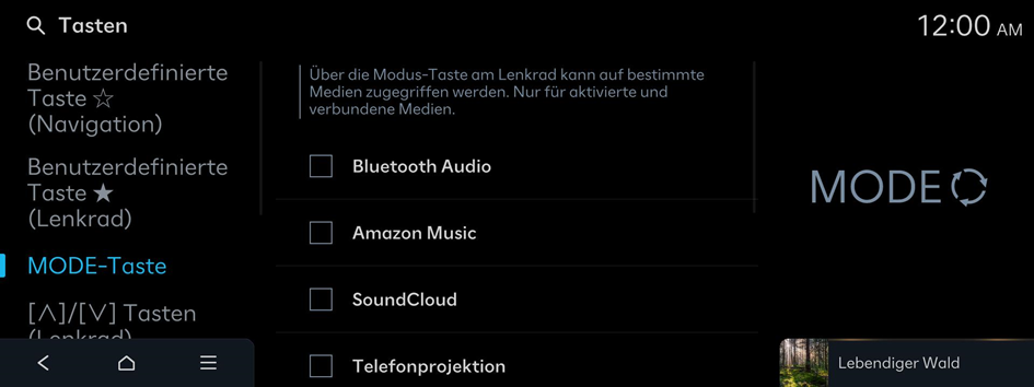 Über die Modus-Taste am Lenkrad kann auf bestimmte Medien zugegriffen werden. Nur für aktivierte und verbundene Medien.
