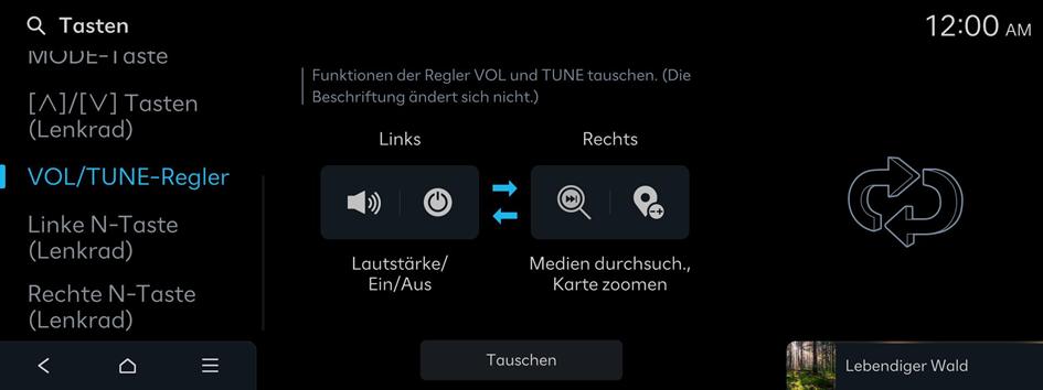 Konfigurieren Sie Funktionen, die beim Drücken von Tasten auf dem Bedienfeld oder am Lenkrad aktiviert werden sollen.