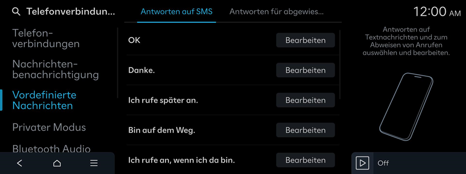 Wählen und bearbeiten Sie die Textnachrichten zum Antworten auf Textnachrichten und für abgelehnte Anrufe.