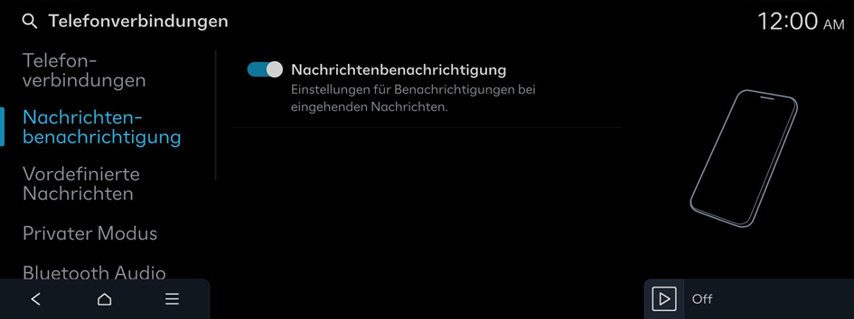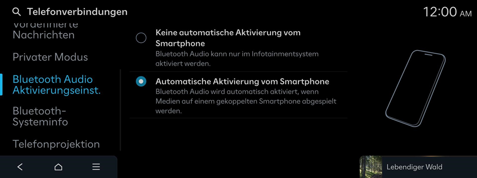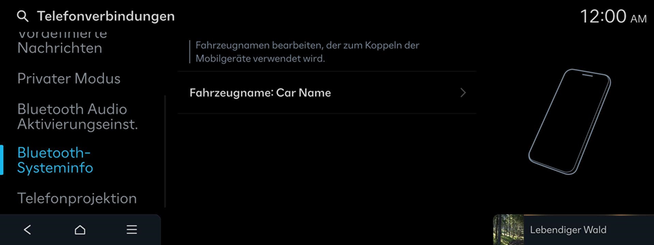 Verwalten Sie Bluetooth-Geräte oder konfigurieren Sie deren Betriebseinstellungen. Sie können auch die Telefonprojektion aktivieren, sodass Sie die Smartphone-App vom Systembildschirm aus steuern können, nachdem Sie das Smartphone mit dem System verbunden haben.