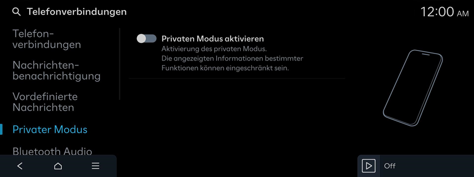 Aktivierung des privaten Modus. Die angezeigten Informationen bestimmter Funktionen können eingeschränkt sein.