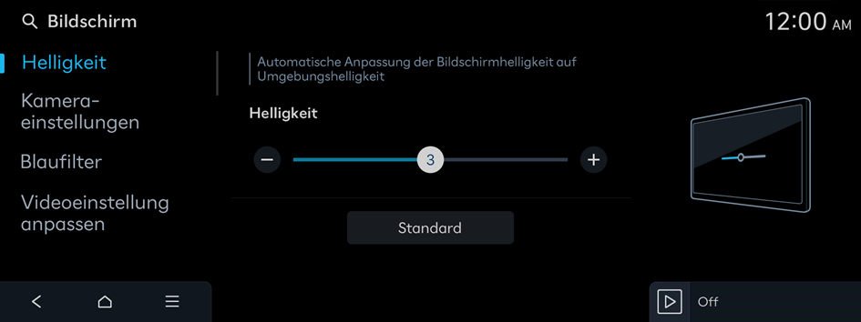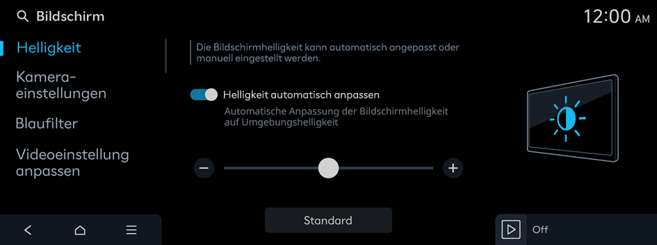 Die Bildschirmhelligkeit kann automatisch angepasst oder manuell eingestellt werden.