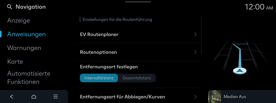- AR: Zeigt die Fahrtrichtung auf dem aktuellen Straßenbild über die Frontkamera an (falls Teil der Ausstattung).