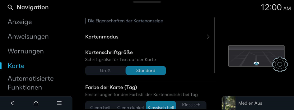 - 3D Fahrtrichtung oben: Dreht die Karte je nach Fahrtrichtung für die 3D-Ansicht.
