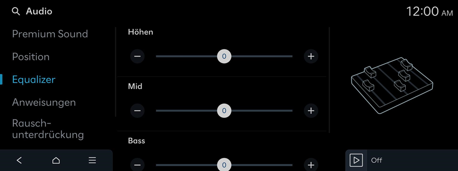 - Um alle Audioeinstellungen auf die Standardwerte zurückzusetzen, tippen Sie auf Zentrieren.