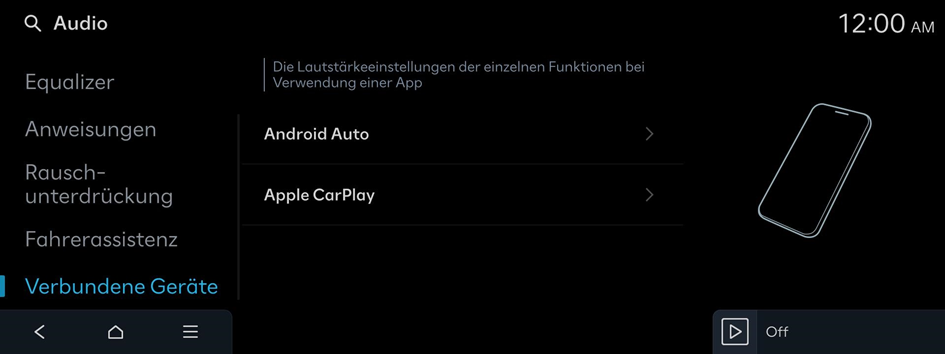 - Um alle Audioeinstellungen des Systems für die Telefonprojektion zu initialisieren, tippen Sie auf Zurücksetzen.