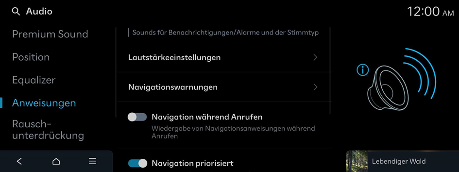 Verringern der Audio-Lautstärken, wenn Navigationsanweisungen wiedergegeben werden. Möglicherweise nicht bei Telefonprojektionsmedien verfügbar.