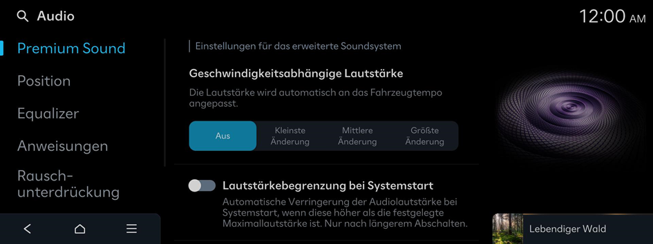 Geschwindigkeitsabhängige Lautstärke (falls Teil der Ausstattung)