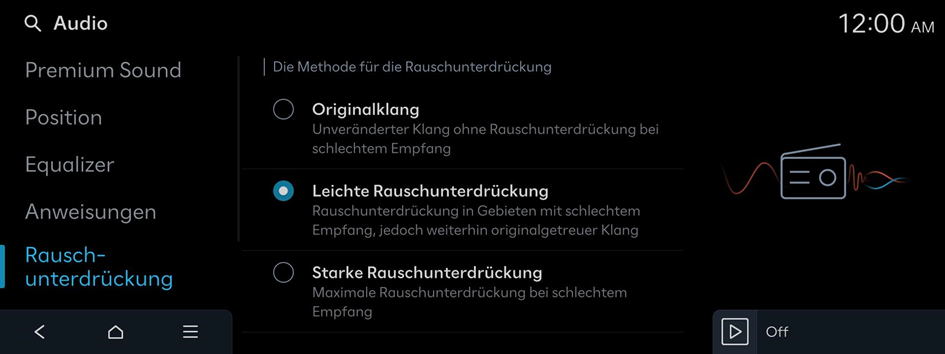 - Je nach den Spezifikationen des Infotainmentsystems und des Verstärkers des Fahrzeugs sind einige Funktionen möglicherweise nicht verfügbar.