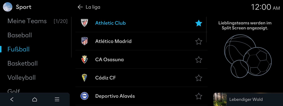 - Eine Sportart auswählen, zu der Informationen angezeigt werden sollen. Ihre Lieblingsteams als interessante Teams einstellen.