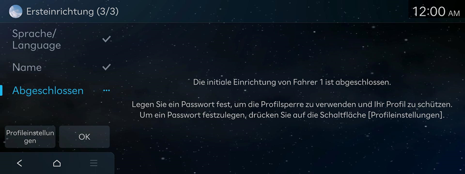 Zum Zugreifen auf den personalisierten Service muss ein Benutzerprofil erstellt werden. Falls noch kein Benutzerprofil erstellt wurde, befolgen Sie die nachstehenden Anweisungen, um ein Benutzerprofil zu erstellen, und synchronisieren Sie es mit Ihrem Bluelink-Konto und Fahrzeugbenutzerkonto, bevor Sie den personalisierten Service verwenden.