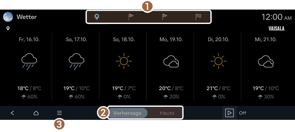 - Wählen Sie den auf dem Wettervorhersagebildschirm anzuzeigenden Ort.