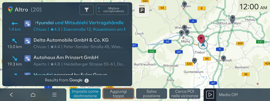 È possibile cercare il luogo desiderato e impostarlo come punto del percorso.
