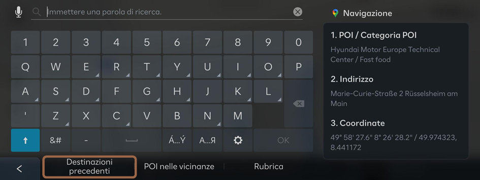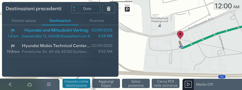 È possibile impostare una destinazione o un punto del percorso selezionando i risultati di una ricerca recente.