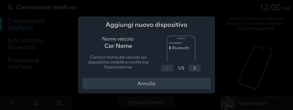 - Attivare il Bluetooth sul dispositivo Bluetooth per connettere e selezionare il veicolo dall'elenco dei dispositivi analizzati.