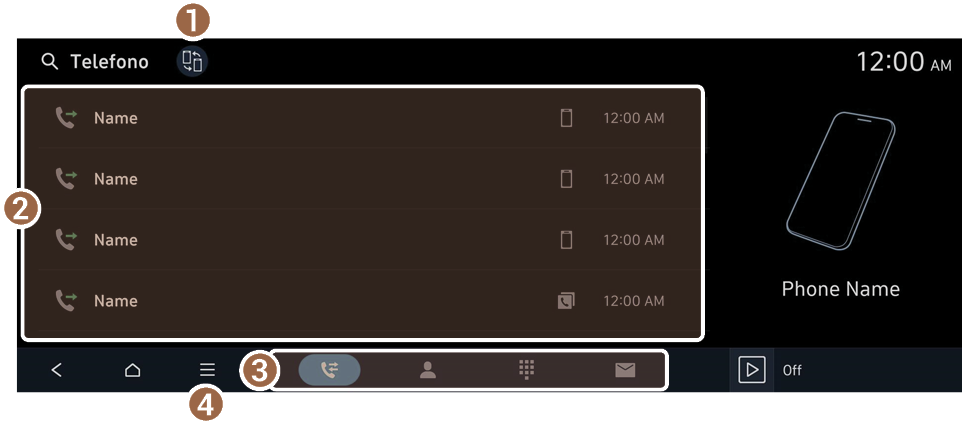 - Utilizzare il pulsante di spostamento sul volante per scorrere l'elenco delle chiamate recenti. Premere il contatto desiderato per selezionarlo.