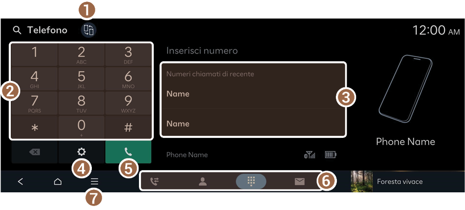 nella scheda inferiore della schermata telefono. - Utilizzare il tastierino per immettere un numero di telefono, quindi premere