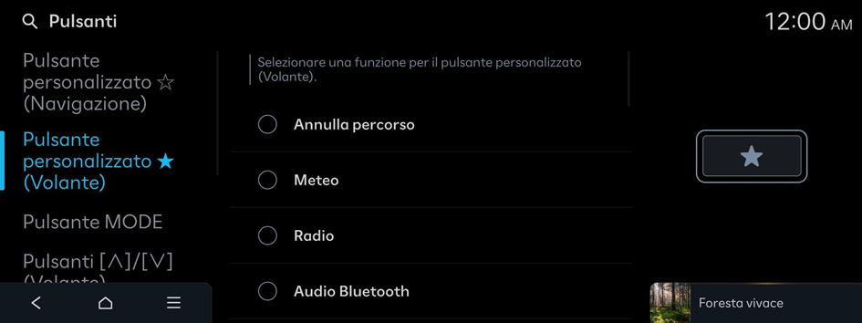 Selezionare una funzione per il pulsante personalizzato (Volante).