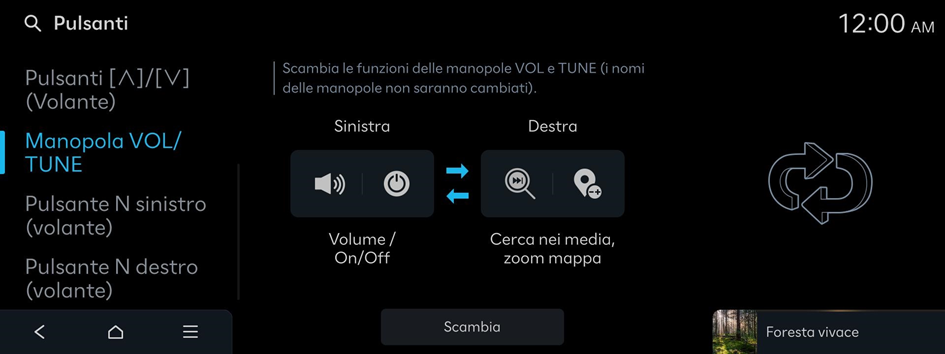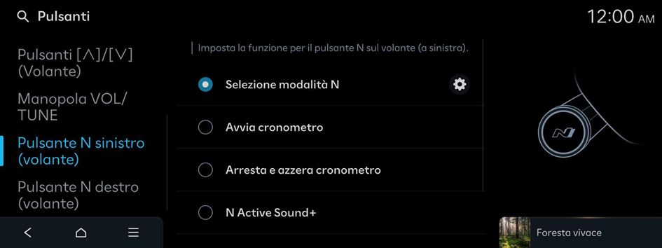 Imposta la funzione per il pulsante N sul volante (a sinistra).