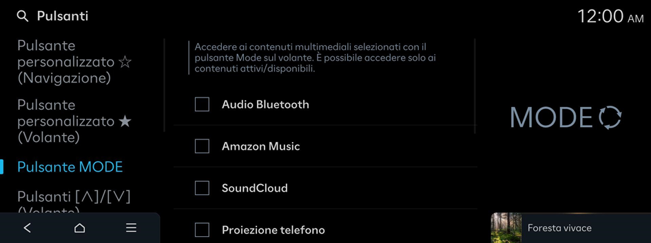 Accedere ai contenuti multimediali selezionati con il tasto Modalità sul volante. È possibile accedere solo ai contenuti attivi/disponibili.