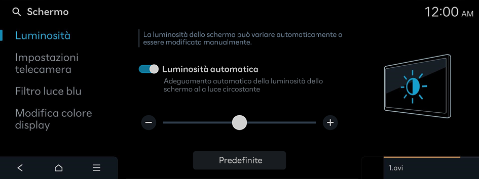 - Per ripristinare tutte le impostazioni di luminosità dello schermo ai valori predefiniti, premere Predefinite.
